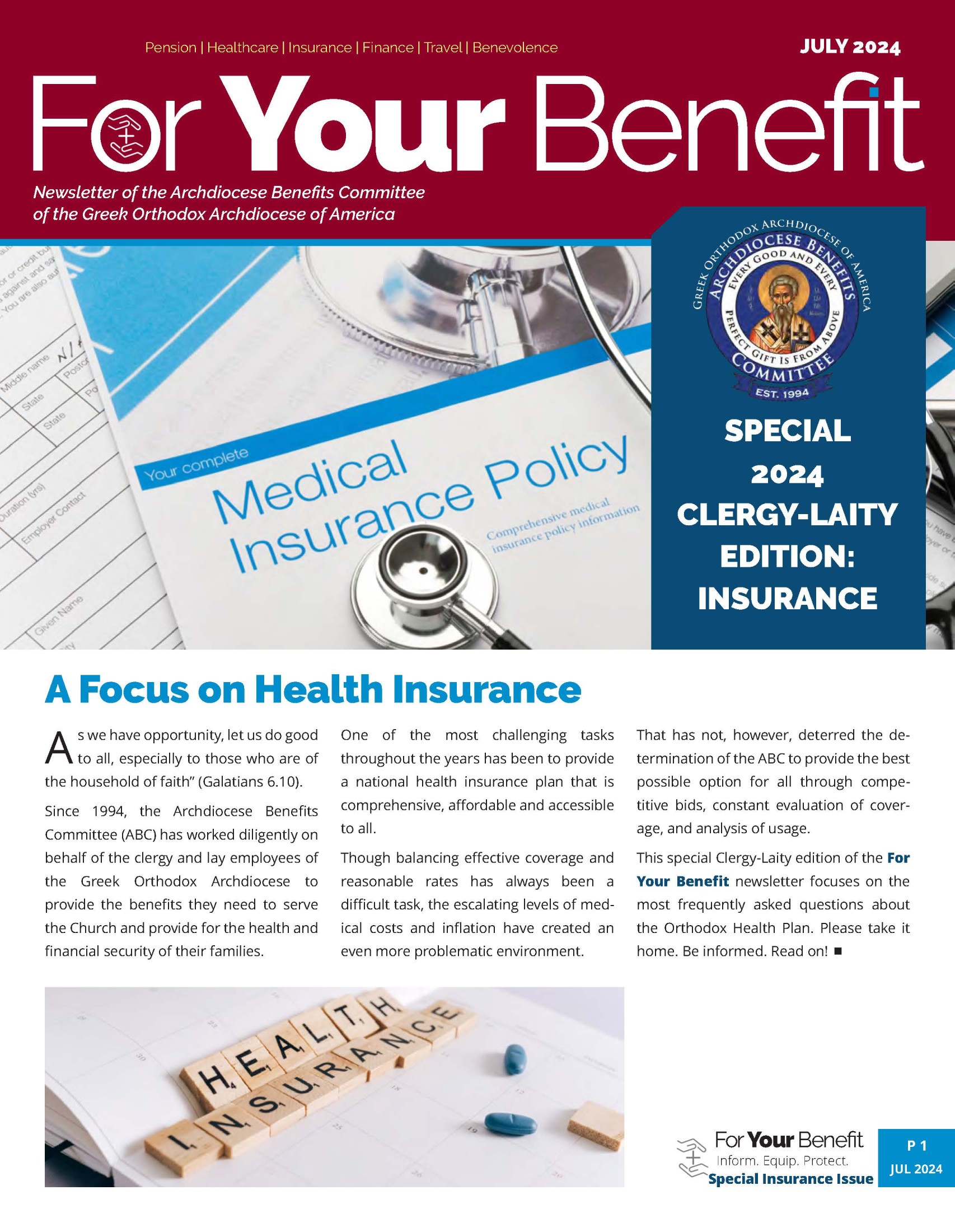 The For Your Benefit newsletter is the official publication of the Archdiocese Benefits Committee (ABC) of the Greek Orthodox Archdiocese of America. Provided as a service of both the Benefits Committee and the Benefits Office, it keeps our Clergy, Presvyteres, Lay Employees, and their families informed about the many services and resources offered through the Archdiocese Benefits Program.